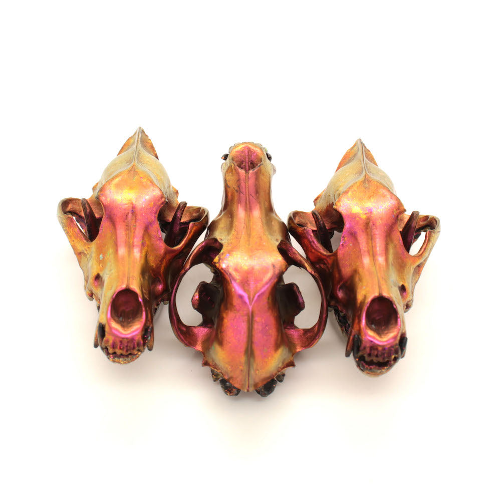 Each model starts with a real skull that I have carefully sourced, then I alter it so I can make a silicone mold of it. After that first copy is made I usually do more alterations, such as sanding/polishing, or shrinking using special compounds or 3D technology. Once I have the perfect form (or master as they can be called) I can make production molds and cast many copies.