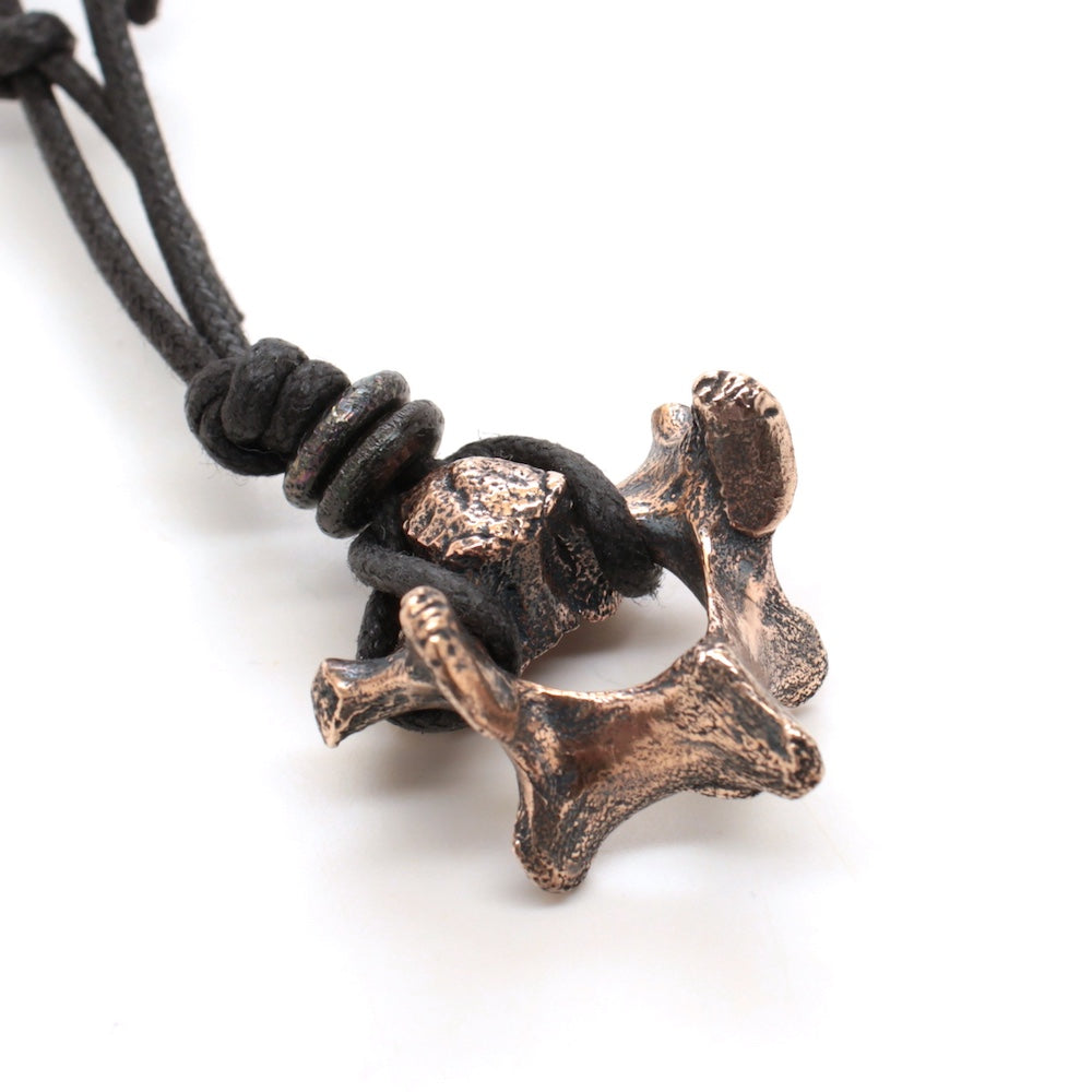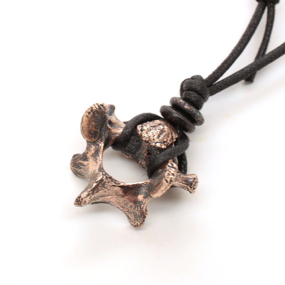 Measures 1.25" long, on an adjustable cotton cord with brass accent beads. This is a hefty pendant, weighing 3/4 of an ounce.