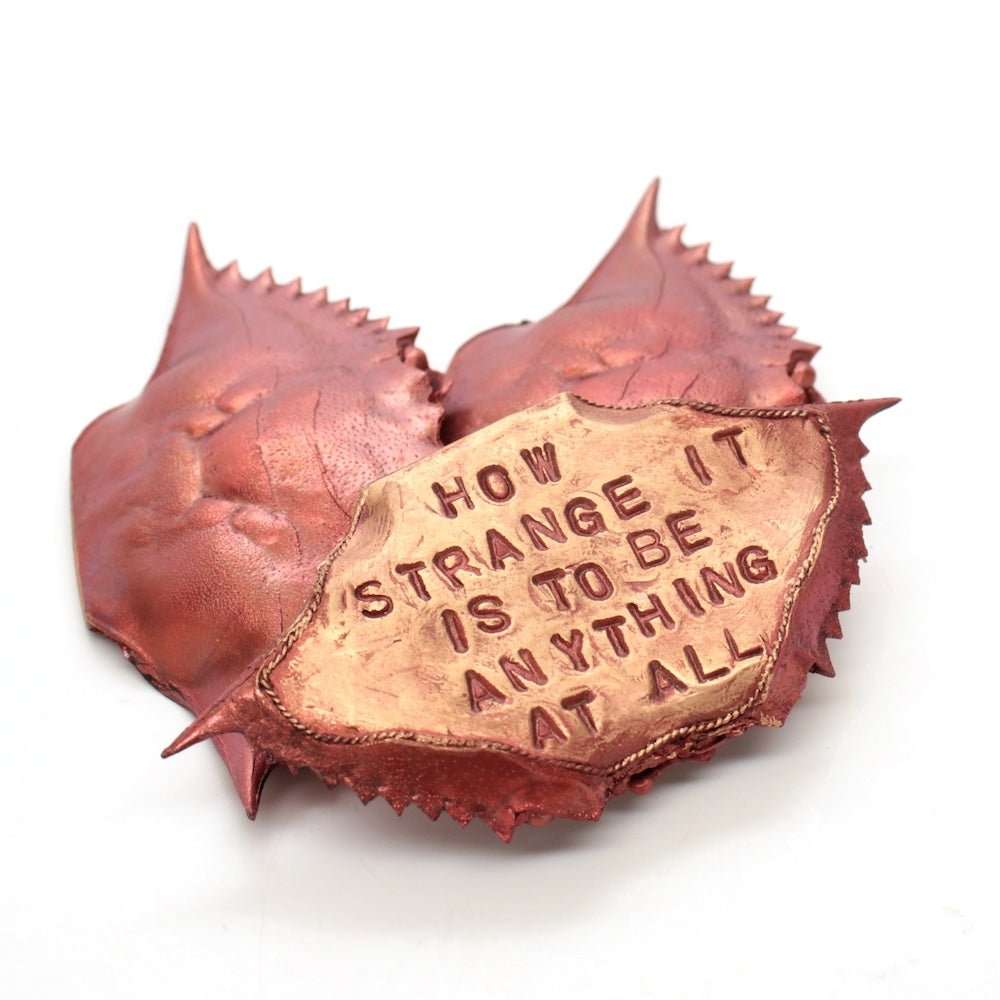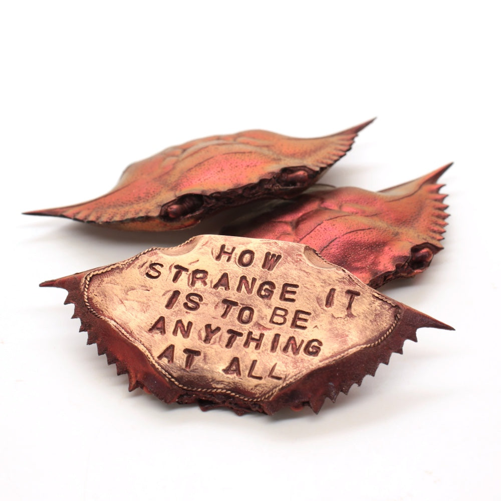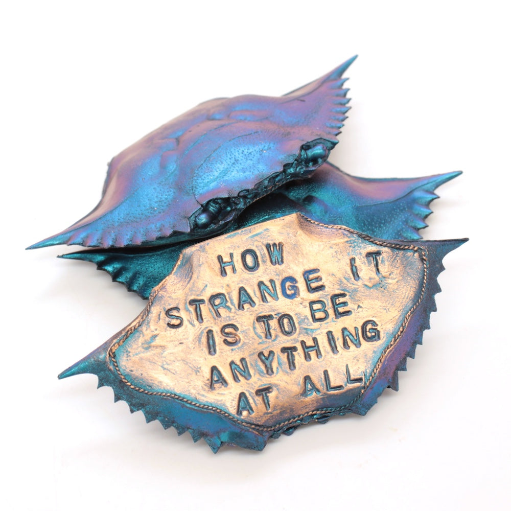 Cast resin crab, with a phrase on the back! Made from molds I created from empty shells I've found while on local Maryland beaches.